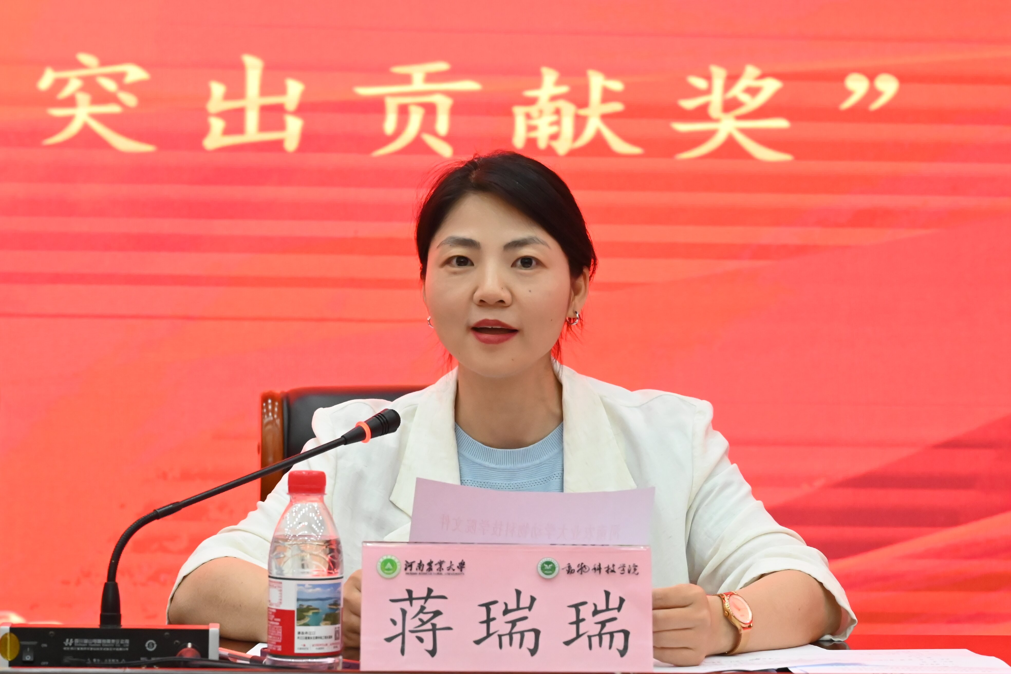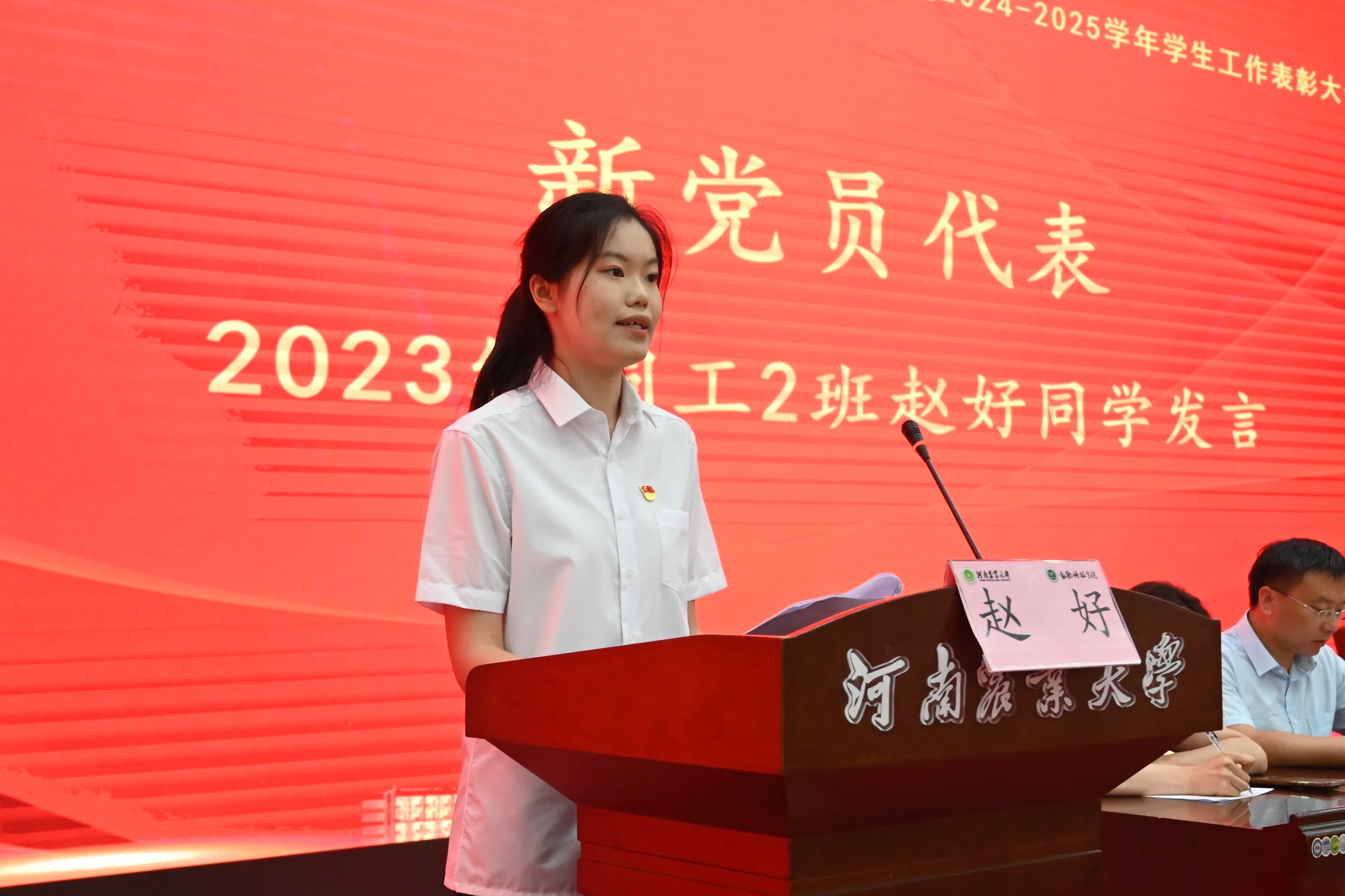 于龙子湖校区繁塔楼大教室一举行新党员入党宣誓暨2024-2025学年学生工作表彰大会,院长李明、院党委副书记郭娟、副院长酒梅菊、副院长孙宇、副院长李转见、农大牧原联合产业研究院副院长蒋瑞瑞、院正科级组织员兼团委书记韩笑及学生代表参会,会议由郭娟主持。