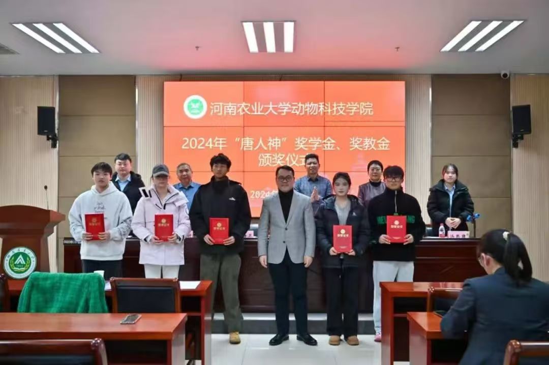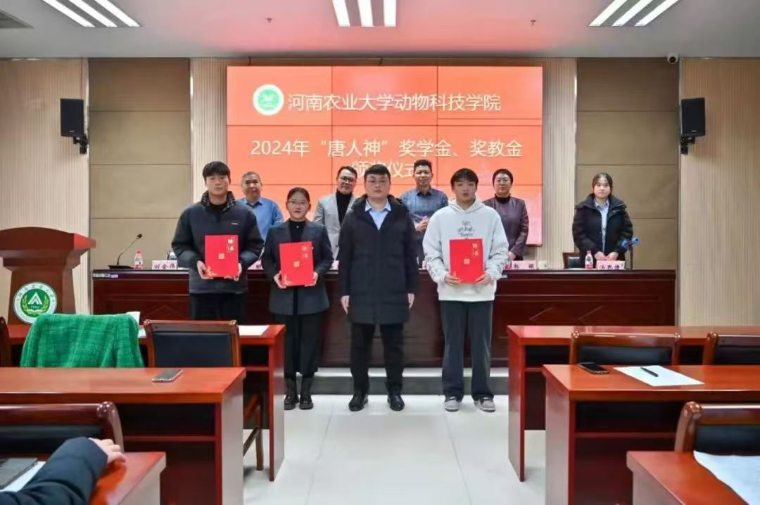 于龙子湖校区繁塔楼A324会议室举行2024年“唐人神”奖学金、奖教金颁奖暨第二届“唐人神班”开班仪式。唐人神集团(大学)执行校长赵海卫、唐人神集团人力资源中心招聘经理刘金伟和招聘主管汤思捷,校友办公室主任胡明忠、色色直播