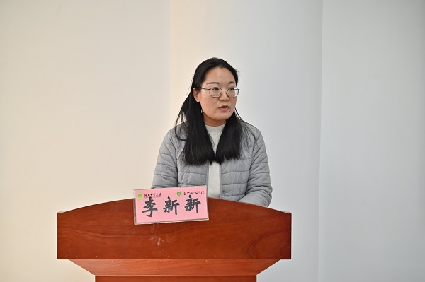 动物营养与饲料科学系教师李新新作为获奖教师代表发言,对河南艾格多科技集团和校院领导表示诚挚感谢。她从教学、科研领域和育人环节三个方面展望未来,期望与众多同仁一道在教育的广袤天地里精耕细作、砥砺前行,为培养新时代优秀人才全力以赴。