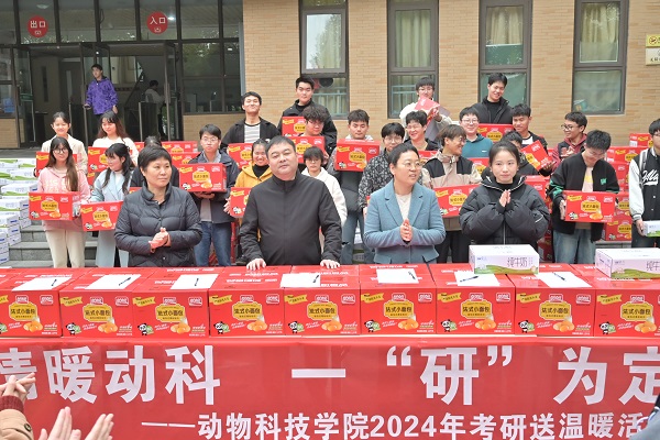 在龙子湖校区,学院领导班子为考研学子发放“加油礼包”,一提提面包和牛奶送至学生手中,现场洋溢着欢乐和温馨。院党委书记余磊与考研学生亲切交谈,勉励大家凝心聚力、持之以恒,同时劳逸结合、沉着应考,学院将全力相助为考研学生保驾护航,祝愿大家都能取得理想成绩、不负青春。