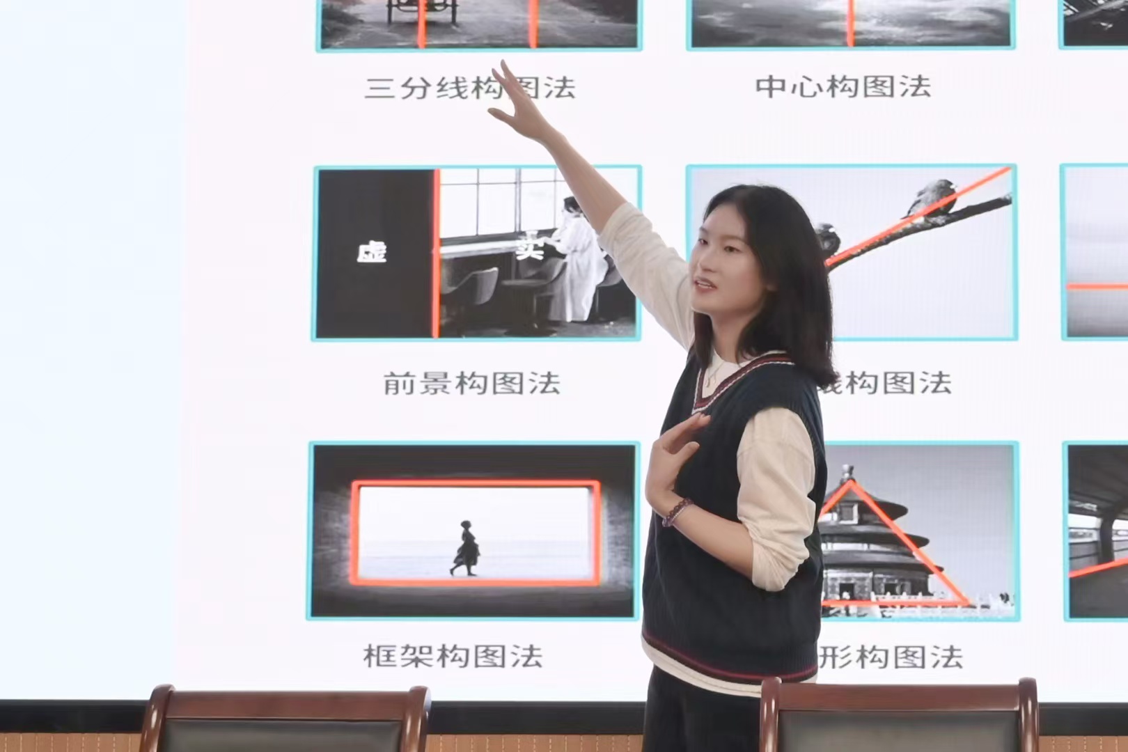 石瑾瑾围绕色彩运用、构图技巧、图片后期制作、后期修整思路以及海报与PPT制作等多个维度,结合生动的实例逐一进行讲解,引领大家深入领略美学的魅力。她强调,在美学创作中,培养审美是至关重要的核心要素。同时她巧妙地利用现场装饰鲜花,就构图技巧为同学们答疑解惑。活动现场气氛热烈,同学们纷纷表示受益匪浅。