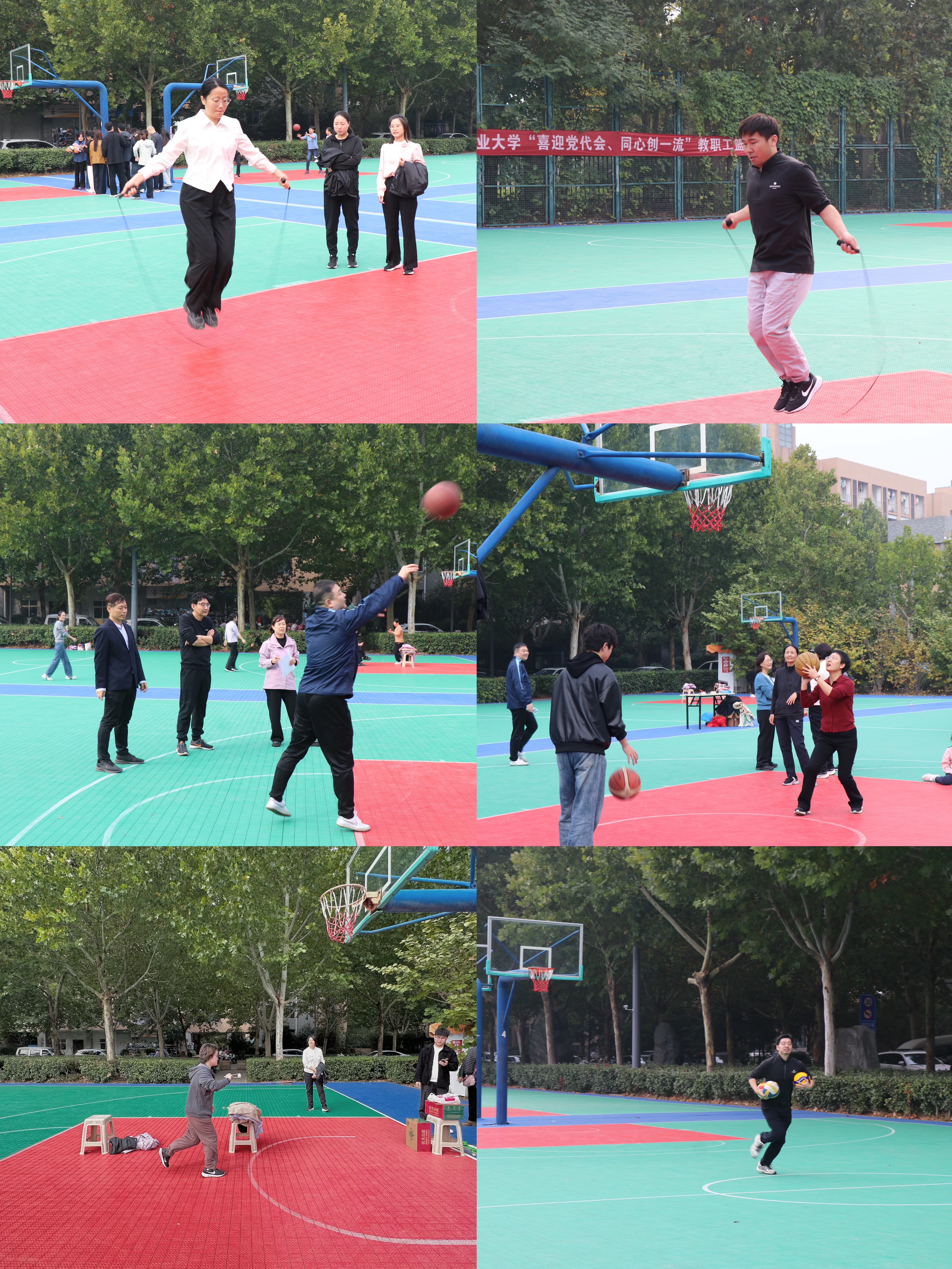 于10月27日在龙子湖校区篮球场举办“喜迎党代会,同心创一流”2024年教职工趣味运动会。学院全体教职工踊跃参与。