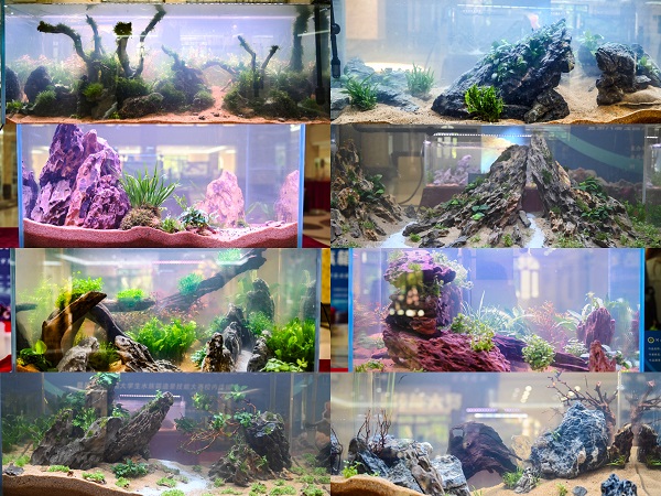 水产养殖学和动物科学专业以及园艺学院园艺专业共14支队伍参加此次比赛,创作出《枯荣》、《桃花源》、《光》、《远山含黛》等一系列精美绝伦的水族箱造景作品,在有限的空间表现出主题思想与最佳美感效果,充分展现出学生的创作思维与艺术灵感。