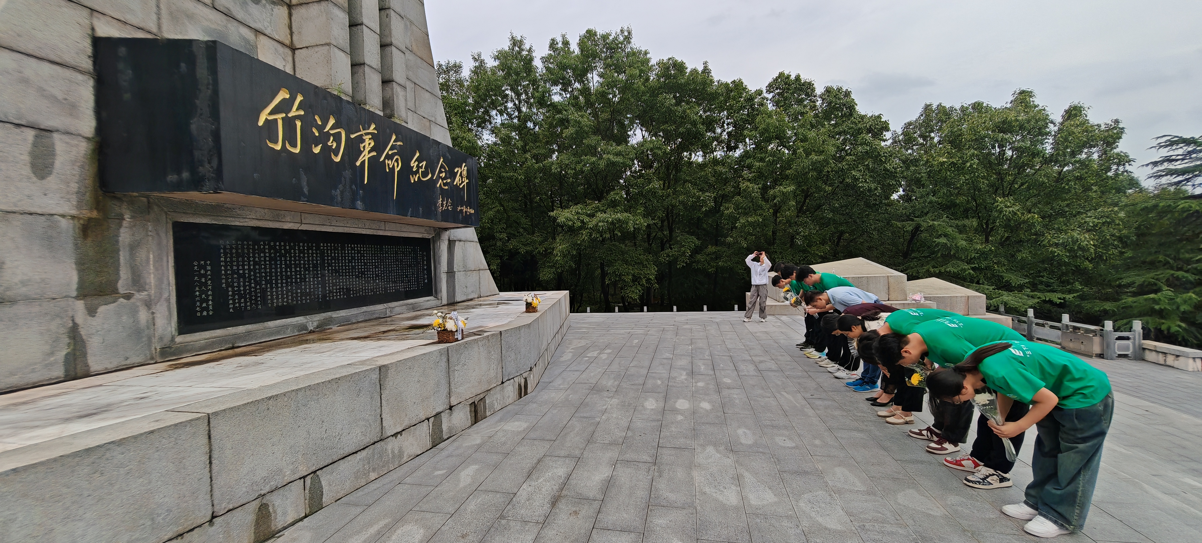 缅怀英烈,铭记历史。在确山县这片红色热土上,每一处革命遗址都承载着厚重的历史记忆。团队成员在雨中为人民英雄杨靖宇将军颂诗、为在竹沟革命中牺牲的烈士们献花、为在解放确山的战役中失去生命的先烈们敬礼……通过参观红色景点、诵读红色诗歌等形式学习和感受当地红色精神与文化,让红色记忆激荡在每个人心中,激发了青年对于国家、民族的自豪感和责任感。