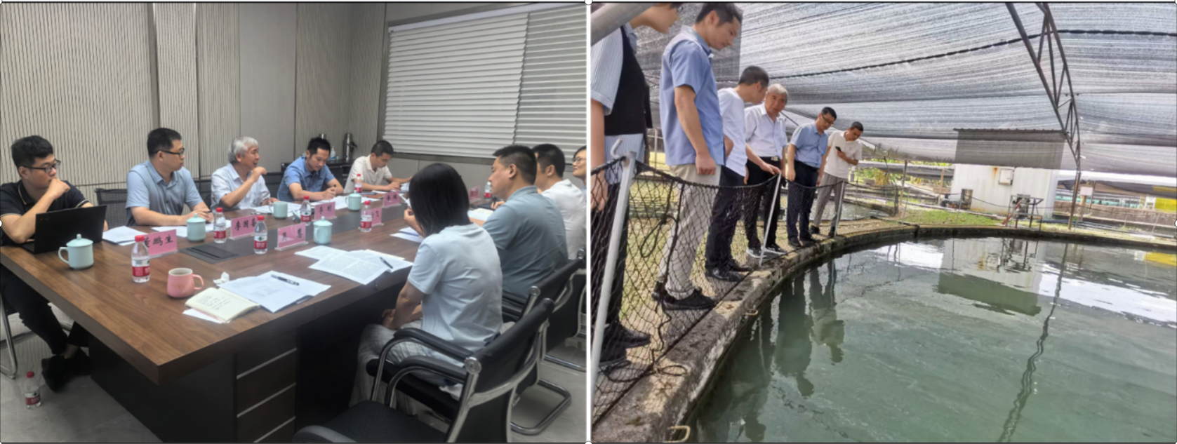 本网讯(通讯员 董鹏生)为培养高质量渔业科技人才,深入了解2021级水产养殖专业本科生实习情况,探索企业院校产教研融合新模式,8月9日-11日学院院长李明教授、水产与经济动物养殖系主任李国喜教授和董鹏生博士赴浙江省衢州市鲟龙水产食品科技开发有限公司和温州市浙江省海洋水产养殖研究所实习基地,探望本科实习生,并与企业院所进行交流调研,探索企业院校产教研融合的新模式和新途径。
