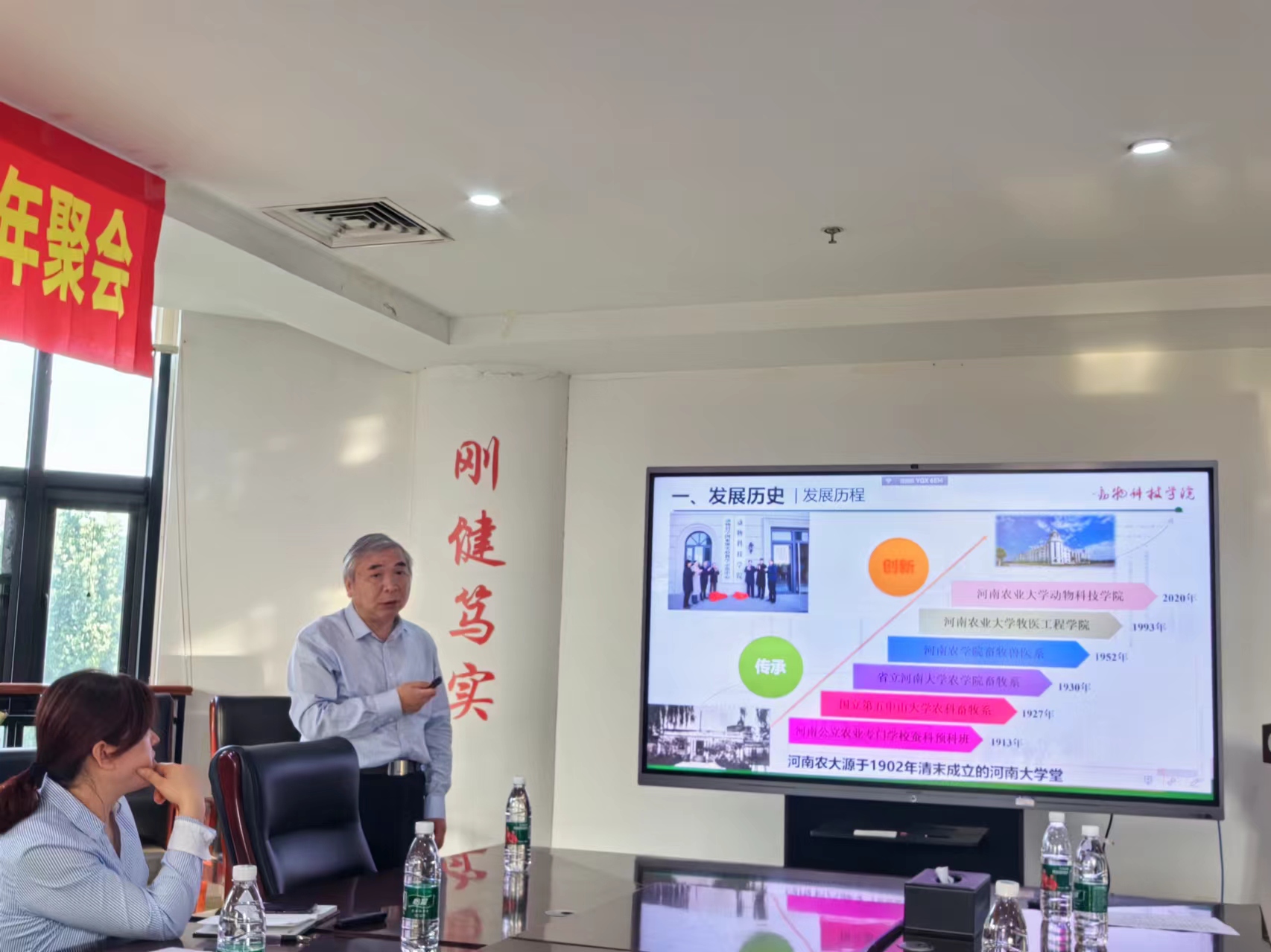 成立后的办学理念、发展方向、发展情况和近些年取得的成绩。韩瑞丽老师详细介绍了班级的情况,对大家所取得的成绩甚感欣慰,并祝福同学们健康快乐,期待再次相聚在河南农大。朱河水老师为同学们十年来的成长和获得的成绩感到喜悦,嘱咐同学们平衡工作、家庭和身体健康的关系。返校同学们积极发言,纷纷表示,大学是他们人生中的非常重要的阶段,老师的教导和同学们的鼓励,让他们终身受益,感谢母校和老师的辛勤培养。