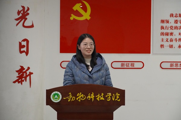 青年教师李新新、郭玉洁、刘凯珍、刘伯帅、余彤、黄小城分别以霉菌毒素生物解毒剂的研制与应用、地塞米松诱导雏鸡应激影响免疫关键调控基因鉴定及功能研究、营养调控在反刍动物绿色健康养殖中的作用、日粮营养-肠道菌群-动物健康、动物早期胚胎发育关键基因挖掘及其功能解析、脂肪酸(DHA)营养调控对草鱼脂肪组织和肝脏健康的影响为题进行专题汇报分享。
