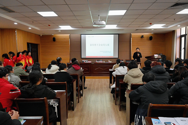 随后,企业领导孙爱平进行企业宣讲,以《新形势下企业用人观》为题,围绕行业变化、集团发展历程、集团所获荣誉、福利保障、人才需求等多方面展开详细讲解,并诚心邀请在座师生到公司参观交流,期待院企双方强强联合,共谱院企合作新篇章。
