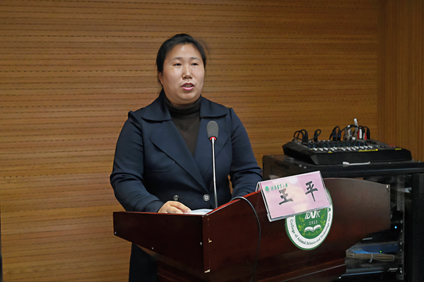 动物营养与饲料科学系教师王平作为获奖教师代表发言分享自身工作成就与职业成长历程,表示奖学金的获得既是认可也是激励,未来将继续以本次获奖为契机,在日后教学工作中再接再厉,并衷心祝愿唐人神集团蓬勃发展。