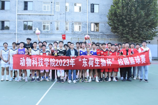 于文化路校区篮球场举办2023年“东荷生物杯”校园篮球赛,辅导员杨超然来到现场为各队伍加油助威。