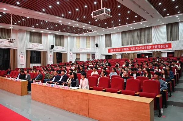 承办,校党委统战部、学工部、校团委联合举办的“中华民族一家亲,同心共筑中国梦”演讲比赛决赛在龙子湖校区大教室一举行。校统战部部长陈书章、院党委书记贾磊及各职能部门负责人出席活动,来自不同学院的12位晋级选手参赛,160余名学子现场观摩比赛。