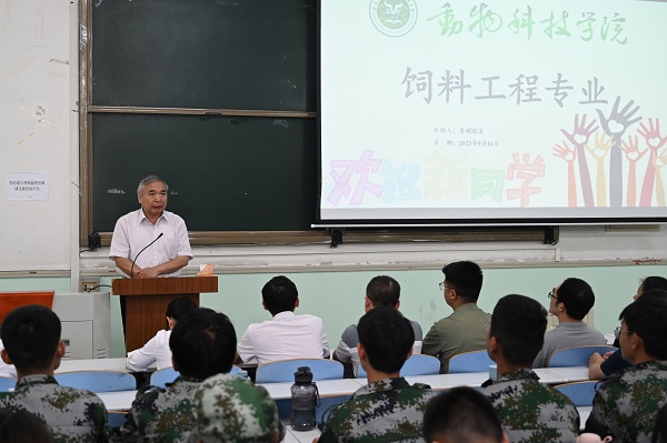 院长李明对饲料工程专业首届新生表示热烈欢迎并讲话