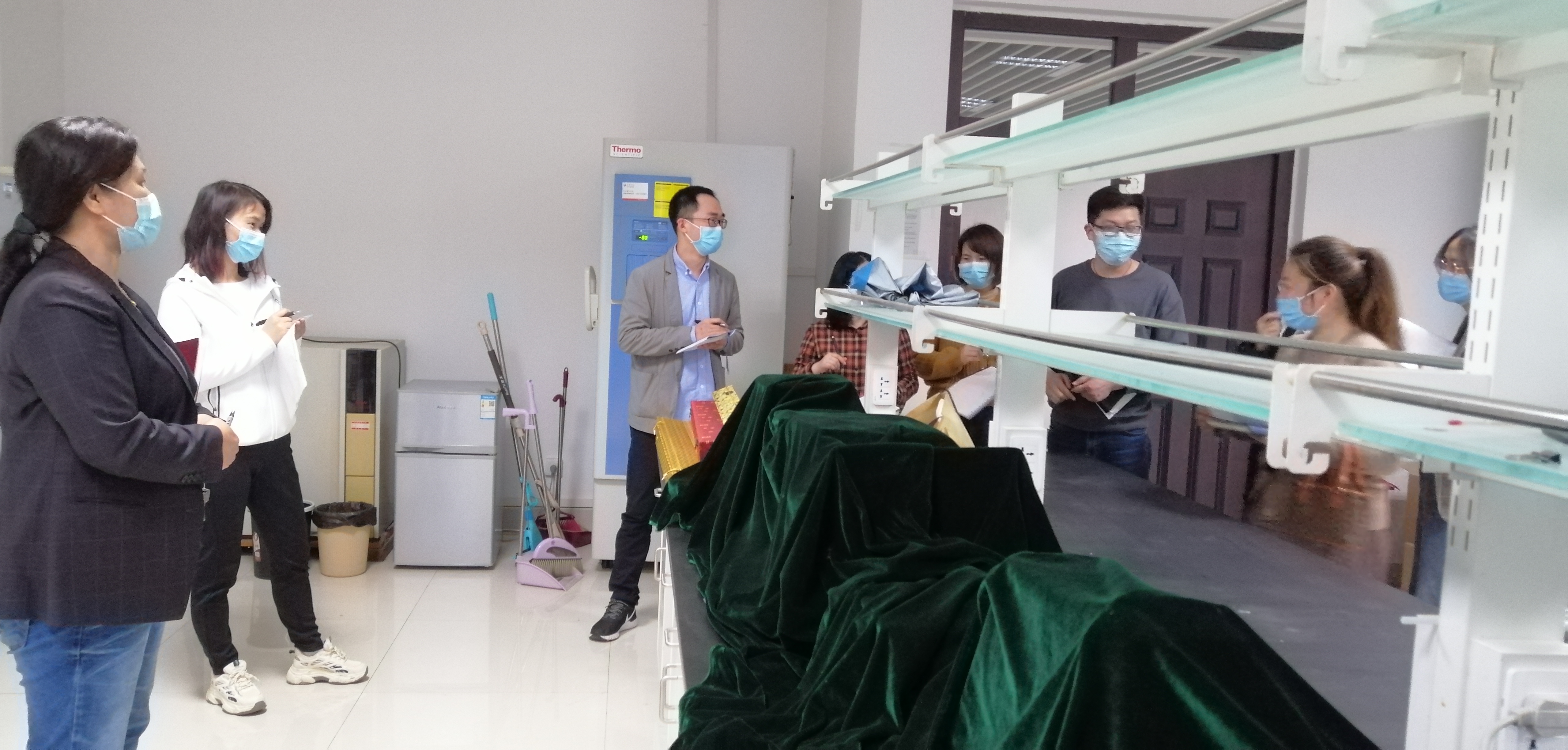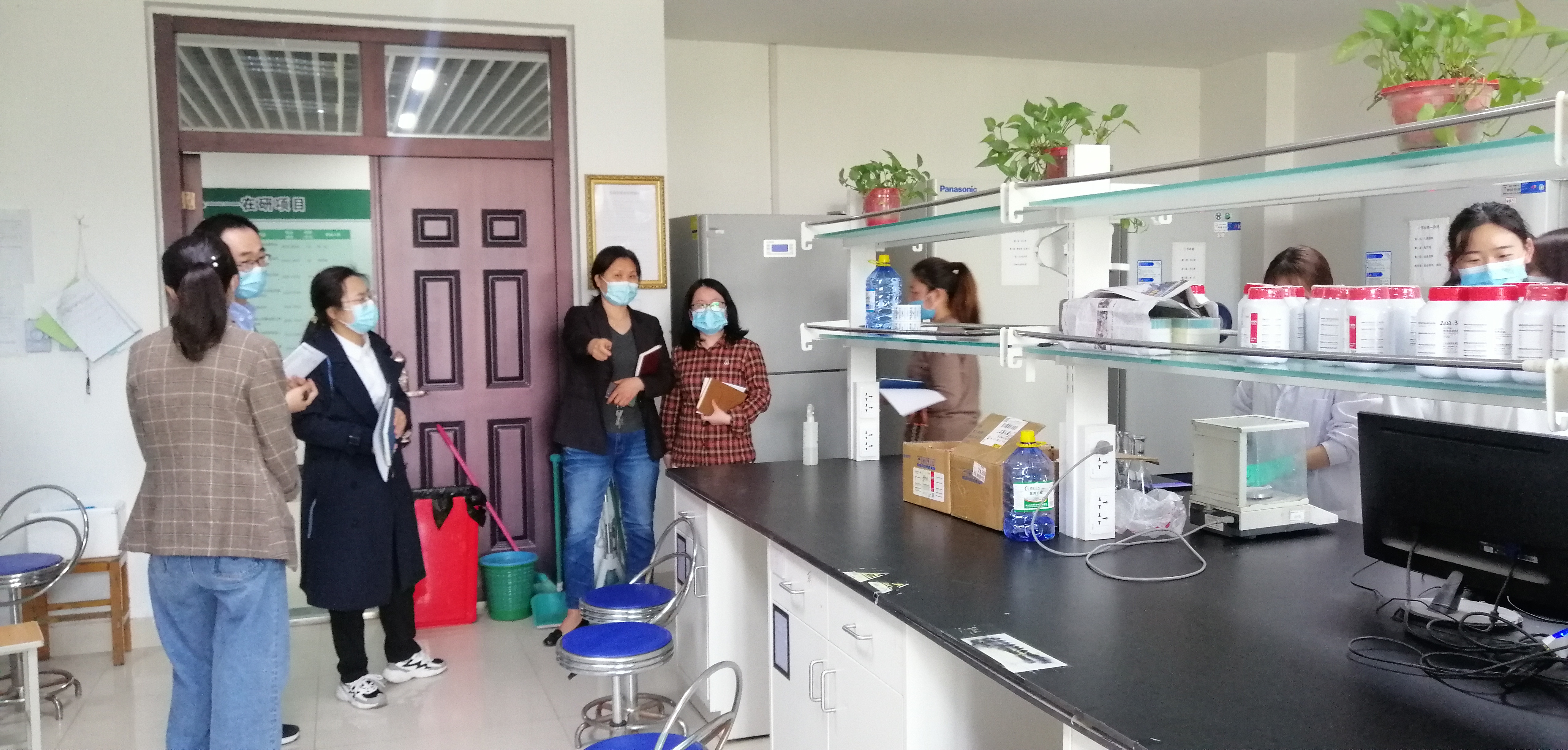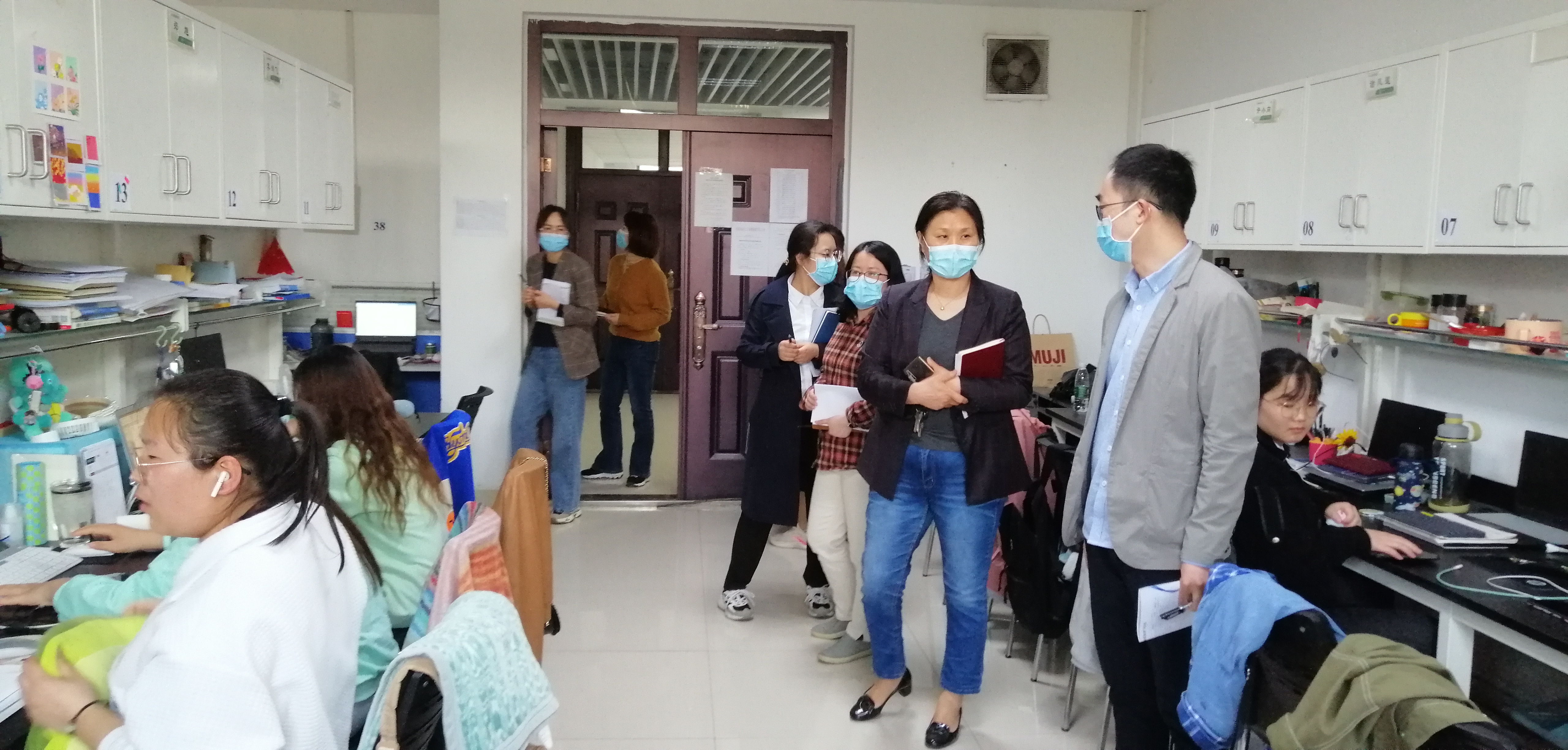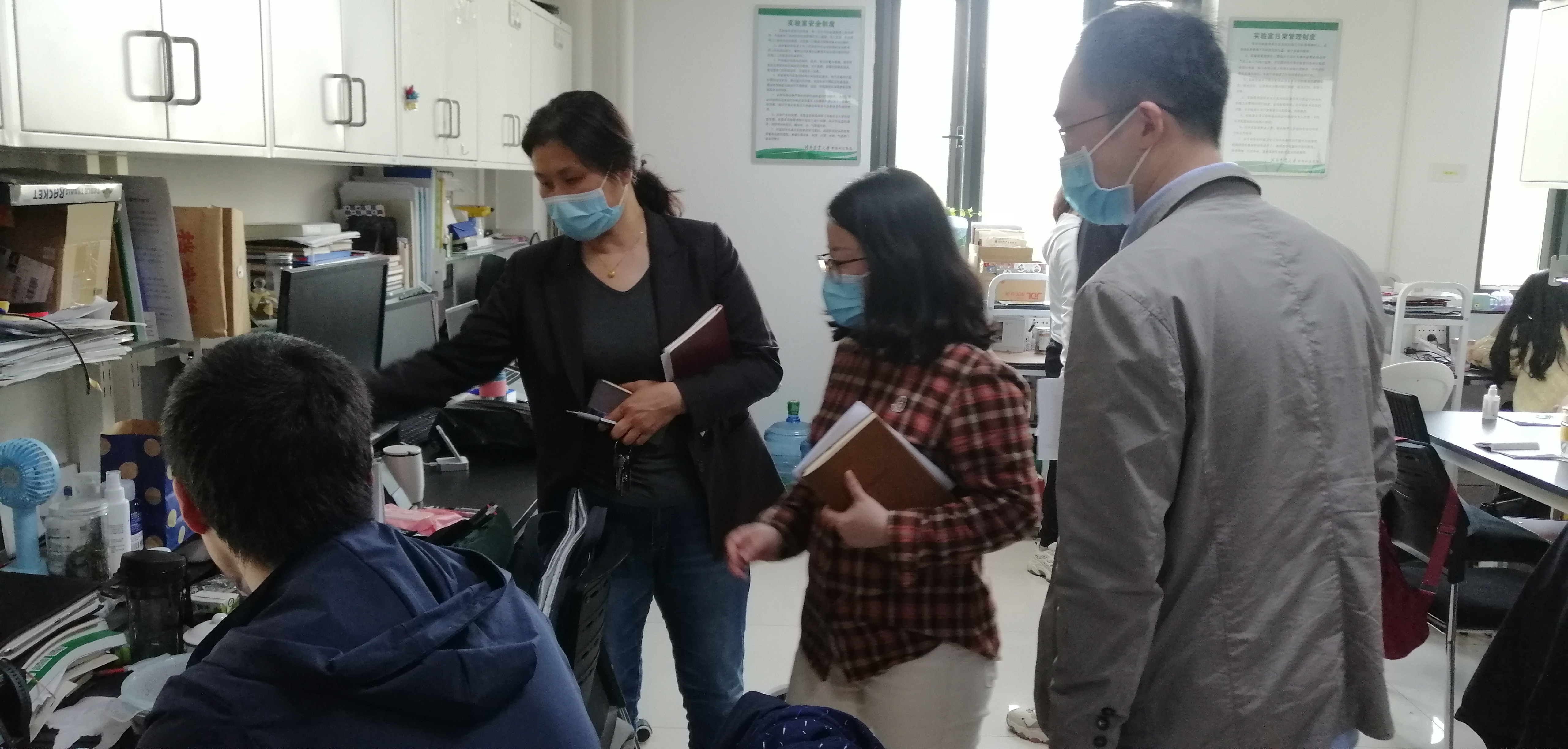 会后,酒梅菊带领参会人员对全院教师办公室、科研实验室、研究生学习室等进行每周例行的安全卫生检查。