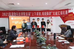 几位参赛选手分别选择了影响因子五分以上的英文文献,主要分享选择该文献的原因、提炼所汇报文献的特色内容和核心观点、以及文献带给自己的启发等四个方面以PPT形式进行展示汇报。由5位评委现场评分。最终2021级研究生豆雅晴获得一等奖,2020级研究生职毅豪、李建增获得二等奖,2020级研究生牛家宽、杨旭、张黎杰获得三等奖。