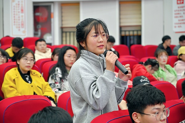 互动阶段,在场师生围绕学院文化建设、就业情况等展开交流,气氛融洽。