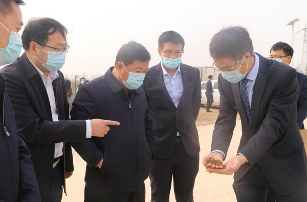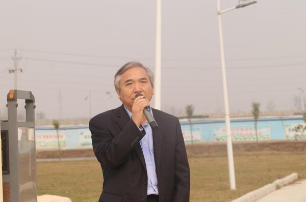 (左一)院长李明、(左二)虞城县副县长吴振兴、(右二)院党委书记贾磊、(右一)河南新航道食品有限公司总经理陈钦辉