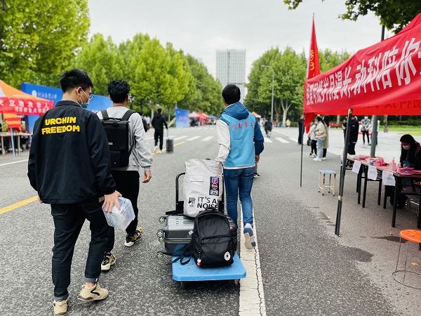 学院领导、班主任老师多次到大本营现场查看工作进展,为现场报到的学子分发口罩和防疫健康包等。由学生党员、学生干部骨干、志愿者等组成的服务小分队连日来不畏寒冷,全力开展志愿服务,有的疏导交通,有的帮助搬运行李,全力助力平安返校各项工作顺利开展。