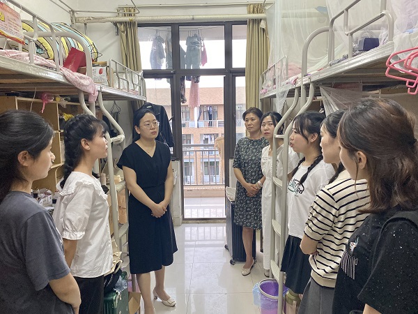 在牡丹园女生宿舍,党委副书记郭娟、副院长酒梅菊与毕业生亲切交谈,询问同学们的离校准备情况,深入了解大家的毕业去向、就业考研情况,重点关注毕业生在生活及工作中存在的困难,便于及时提供支持。