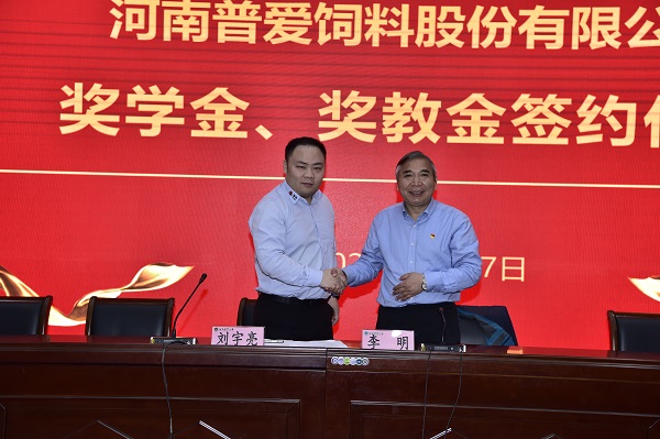 院长李明和河南普爱饲料股份有限公司总经理刘宇亮签约