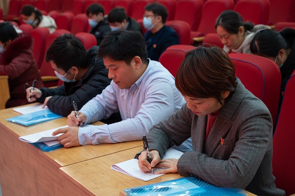 在龙子湖校区大教室一举行了全体班主任大会,党委书记贾磊、院长李明、党委副书记郭娟、副院长田亚东、付彤及各班班主任参加会议。
