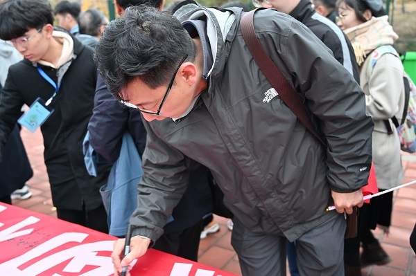 仪式在师生合唱《我和我的祖国》中圆满落下帷幕,现场还举行了“燃动科学风之火 促青春奋进之行”学风建设主题签名活动。