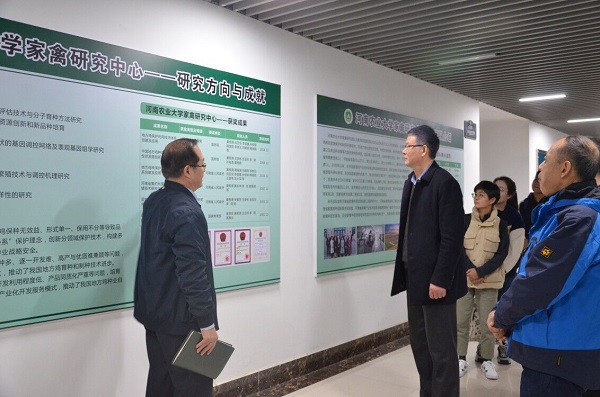 刘小军教授向龚道清教授、王洪荣教授一行介绍家禽中心团队