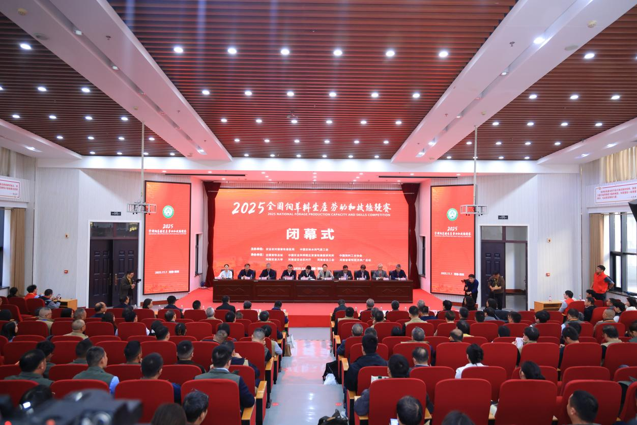 魏宏阳主持闭幕式。姜晓捷、辛国昌分别进行总结讲话,对获奖单位和个人表示祝贺,并指出,这是一次高水平、高质量的技能盛会,是一个交流心得、锤炼本领、赛出风采的宝贵平台。当前,我国畜牧业正处在转型升级的关键时期,保障优质饲草料供给,关乎国家粮食安全和乡村振兴战略大局,期望参赛选手以此次竞赛为新的起点,珍惜荣誉、苦练内功、示范带动,做知识型、技能型、创新型的劳动者,为筑牢我国畜牧业高质量发展的根基再立新功。