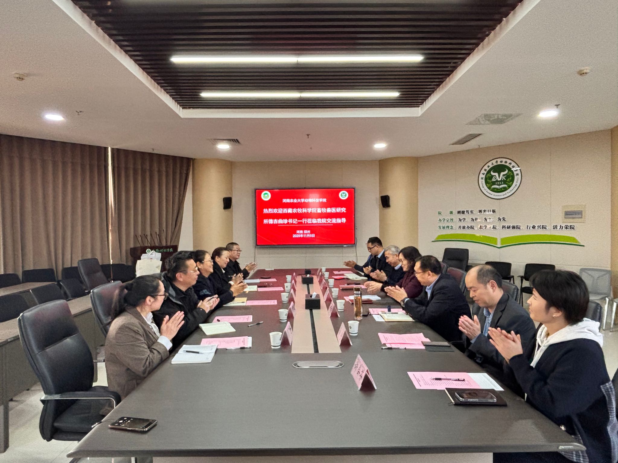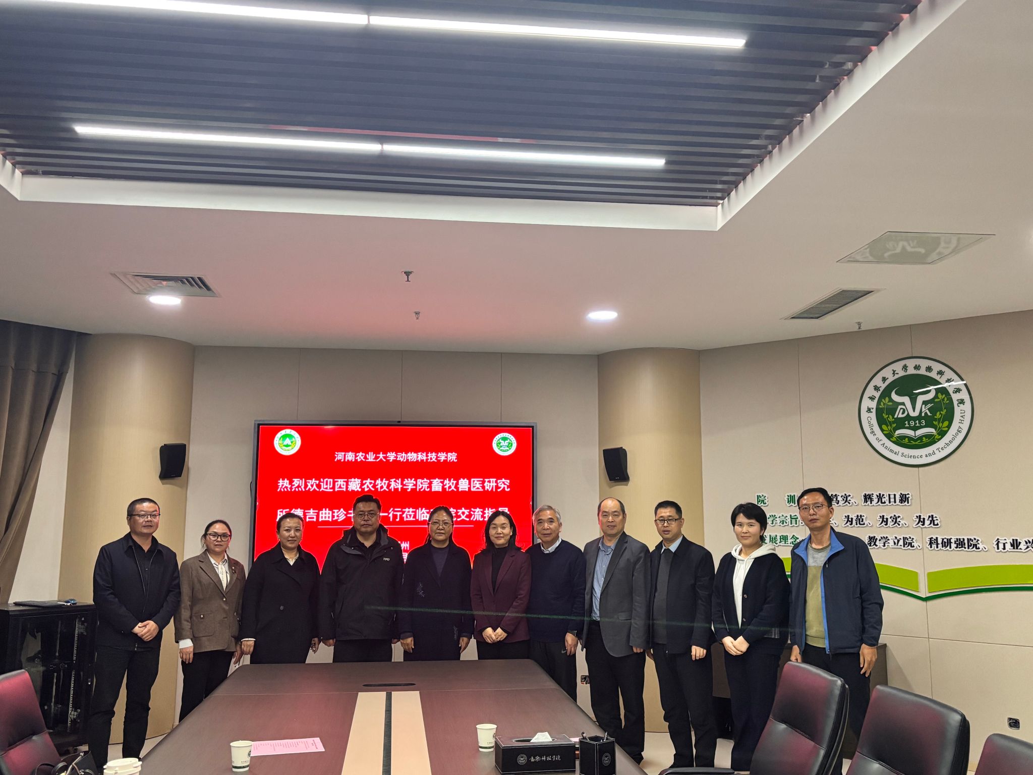 张利冰对德吉曲珍书记一行到访表示热烈欢迎,并介绍了学院在地方鸡种质资源保护利用领域的成果。田亚东重点介绍了学院在动物遗传育种与繁殖、动物营养与饲料科学、畜禽健康养殖等科研领域的布局及创新进展,展示了人才培养与科学研究的显著成效。随后,德吉曲珍书记介绍西藏自治区农科院畜牧兽医研究所在高原特色畜牧资源保护利用和动物疫病防控等领域的研究现状与发展需求,提出围绕高原特色畜牧业探索跨区域科研合作新路径的期望。