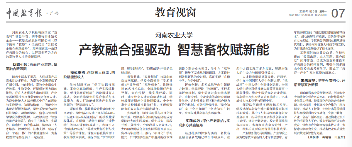 【媒体动科】中国教育报——色色直播 产教融合强驱动,智慧畜牧赋新能