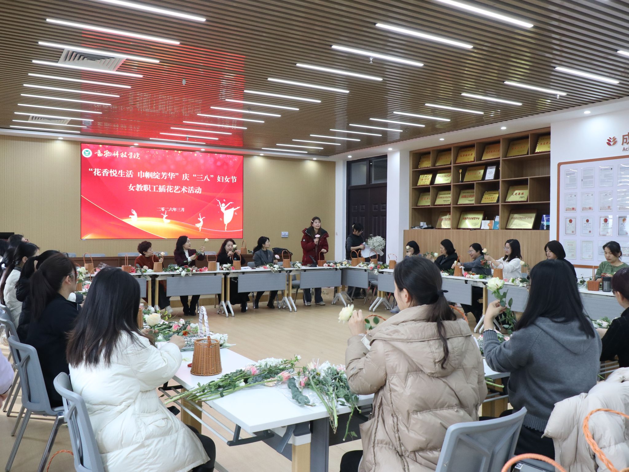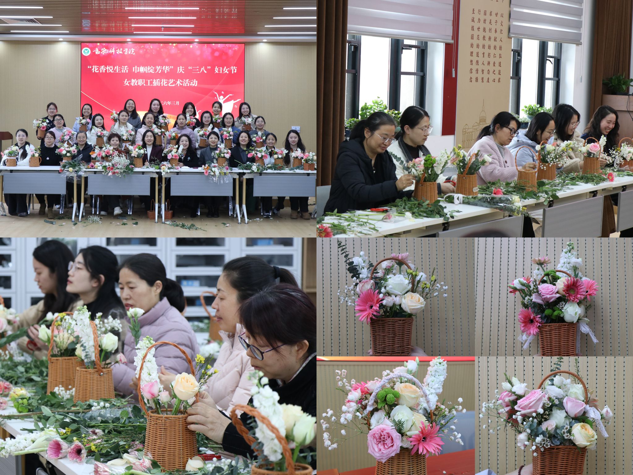 (通讯员 郭梦瑶)阳春三月,花香四溢。为庆祝第116个“三八”国际妇女节,丰富女教职工的精神文化生活,提升艺术修养和生活情趣,3月6日下午,学院在第一实验楼南508会议室成功举办了“花香悦生活 巾帼绽芳华”主题插花艺术活动。院领导与全体女教职工欢聚一堂,共度美好时光。