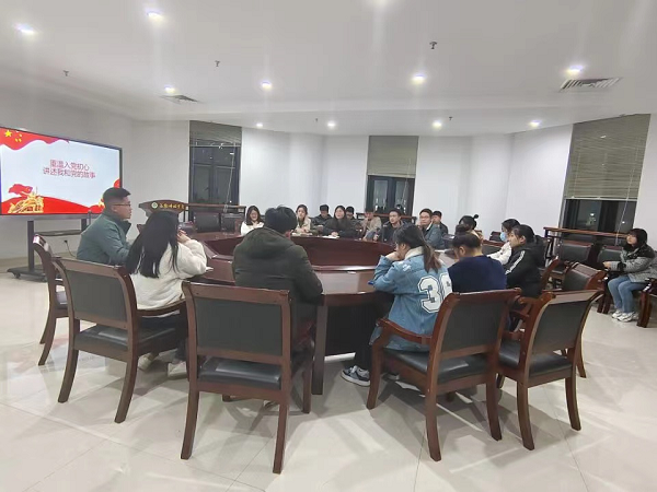 重温入党初心,讲述我和党的故事。在学习交流环节,党员同志们积极发言,交流入党初心,分享入党故事。2019级研究生杜振伟认为,19年疫情的爆发让他深刻的认识到疫情面前中国共产党人的大无畏精神,不惧死神,党员同志每每都冲到第一线;21年郑州的水灾,外地支援的物资于凌晨2点运到学校,一直坚持在场争先恐后搬运物资的仍是共产党员,每当国家出现困难,总能看到党员前仆后继的身影,正是这种精神和信仰,让中国越来越繁荣富强,也正是这种力量让其坚信只有中国共产党才能带领中国走向巅峰,并深受这种力量的影响,迫切的想要加入共产党。