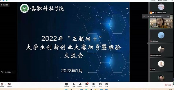 于2022年1月13日晚举行线上“互联网+”大学生创新创业大赛动员暨经验分享会,特邀“互联网+”校赛一等奖项目《“仲”为羊用—绵羊的杜仲生态饲料》负责人邓栩翔在线分享备赛、参赛经验,团委书记韩、团委副书记黄璞及全体班长支书参加本次会议。