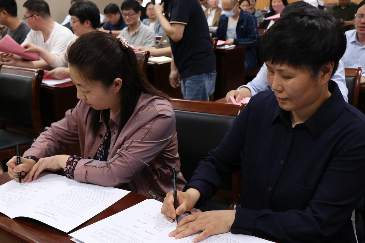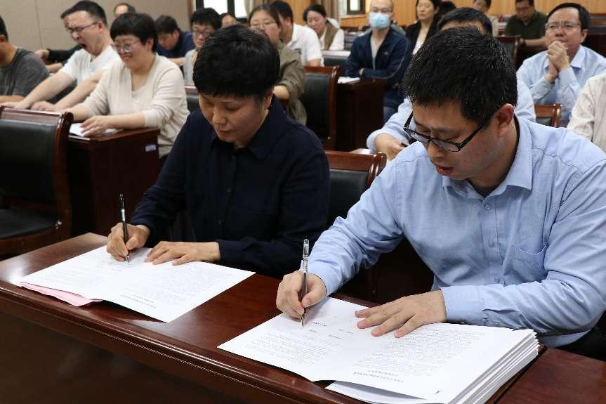 本网讯(通讯员 党丹岐)为加强实验室安全工作,全面落实实验室安全责任,确保实验室安全有序运行,4月19日下午,色色直播 于龙子湖校区第一实验楼南321会议室举行实验室安全管理目标责任书签订仪式。院党委书记贾磊、院长李明、副院长酒梅菊、付彤、孙宇及全体教职员工参与会议。