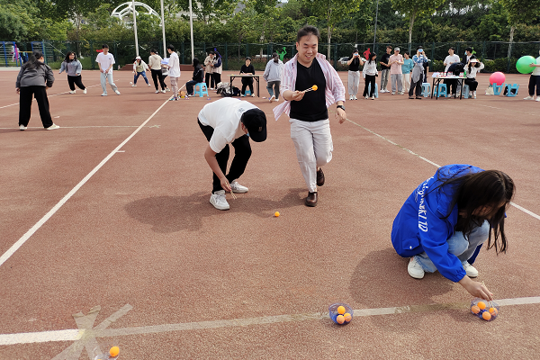 本次素质拓展活动设置了乒乓球运送比赛、丢沙包比赛、蒙眼取水和背靠背夹球跑四个项目;同时在比赛现场设置抽奖环节。参赛选手激情饱满、巧用智慧、团结协作、拼搏竞争,展现团队精神的同时,也愉悦了身心,传递了快乐,欢声笑语充斥在龙子湖校区运动场上,经历了一场减压与成长之旅。