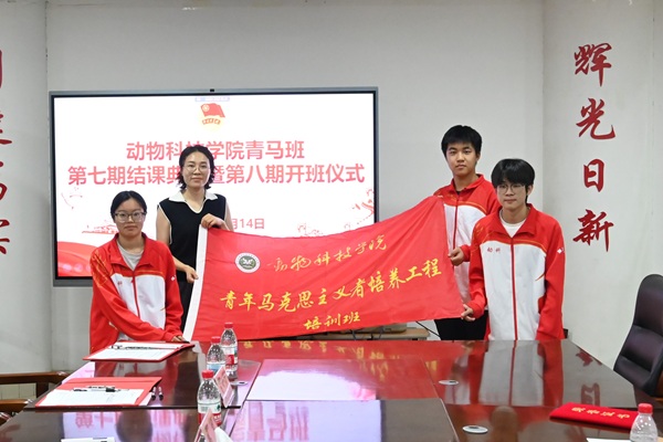本网讯(通讯员 吴雨蒙)为全面落实青年马克思主义者培养工程要求,提升青年学生的理论素养和政治觉悟,6月14日晚,色色直播 于龙子湖校区第一实验楼北330举行青马班第七期结业典礼暨第八期开班仪式,院组织员兼团委书记韩笑、第七期青马班代表及第八期青马班全体同学参会,会议由王继轩主持。
