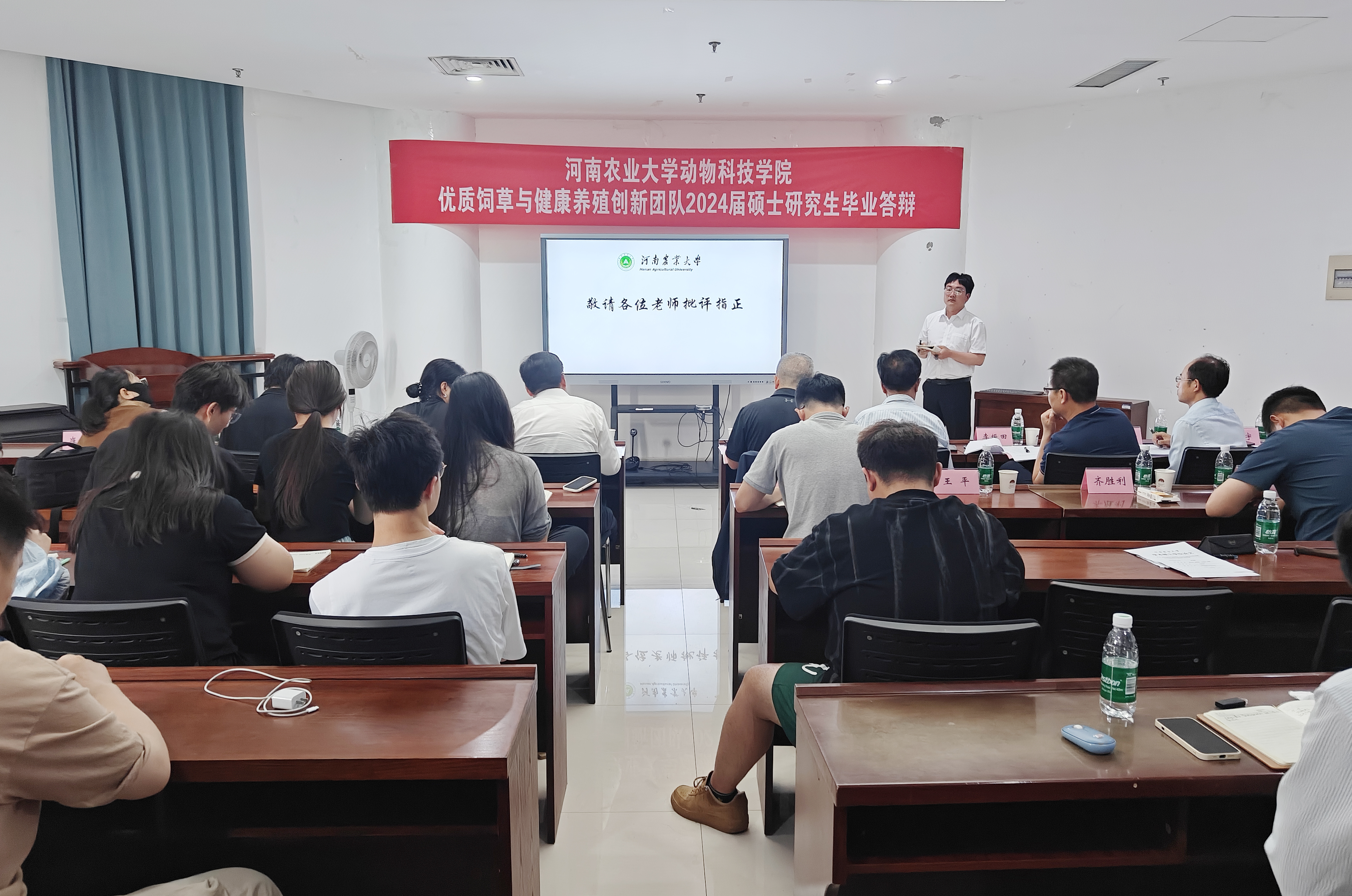 研究生论文答辩的要求和程序进行,依次完成导师介绍答辩人个人情况、答辩人汇报PPT、专家提问等环节。优质饲草与健康养殖创新团队的8位2024届硕士研究生,分别从选题背景、研究方法、研究内容、研究结果、创新点及未来展望等方面向答辩专家汇报了硕士期间的科研工作。答辩专家们针对论文选题依据、研究成果、专业能力、写作能力和答辩水平等方面进行了深入的提问,全面考察了毕业生的专业知识掌握程度及综合素养,并提出了宝贵的意见和建议,以进一步提升研究生论文的质量。答辩同学认真记录并回答了专家学者提出的问题,表示将对论文进行进一步修改和完善。答辩现场气氛严肃而融洽、紧张而有序。