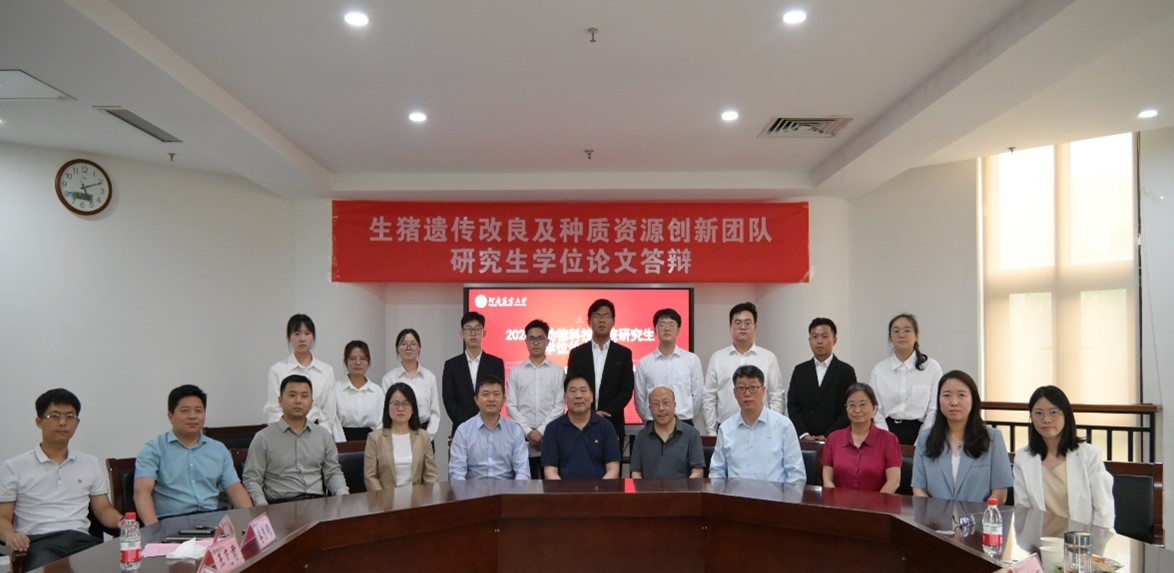 生猪遗传改良及种质资源创新团队成功举办了2024届硕士研究生学位论文答辩会。本次答辩会特别邀请西北农林科技大学孙超教授担任答辩委员会主席,华中农业大学朱猛进教授,南京农业大学李平华教授,生猪团队李新建教授、李春丽教授、韩雪蕾教授、乔瑞敏教授、王克君教授、李秀领副教授担任答辩委员会委员。答辩委员会秘书由余彤博士和柏峻博士组成。