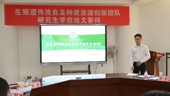 研究生论文答辩的要求和程序,秉承公开透明、严谨公正的原则,从导师介绍答辩研究生个人情况、答辩学生汇报PPT、专家提问、学生回答等环节开展答辩工作。生猪遗传改良及种质资源创新团队10位硕士分别从选题背景、研究方法、研究内容、研究结果、创新点及未来展望等方面向答辩专家汇报了硕士期间的科研工作。在评委点评提问环节,答辩委员们对同学们严谨的态度和论文的学术水平给予了充分肯定,对论文中存在的逻辑结构、语言表达、格式规范等问题提出了进一步修改的意见和建议,并针对每位答辩研究生的论文疑惑进行提问。每位学生都认真回答了评审提出的问题,并表示答辩之后将再次修改完善论文。答辩现场气氛严肃而融洽、紧张而有序。