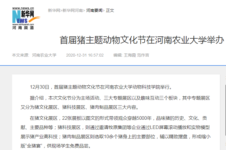 首届猪主题动物文化节,通过设置猪文化、猪高科技、猪肉制品(全猪宴)三大展区,主场文体演出、有奖猜谜、互动抽奖等五大活动,旨在从学生的兴趣点出发,在传承中华民族传统文化的同时,科普基础的动物文化和现代高科技养殖技术,让学生有滋有味尝美食,有声有色学知识,理清思想困惑,明晰专业目标,把“学农、知农、爱农、弘农”的使命扛在肩上,也为学院畅通校企合作渠道,搭建学生实习实验实训的“三实”教育平台、主动对接人才培养需求打下坚实基础。。