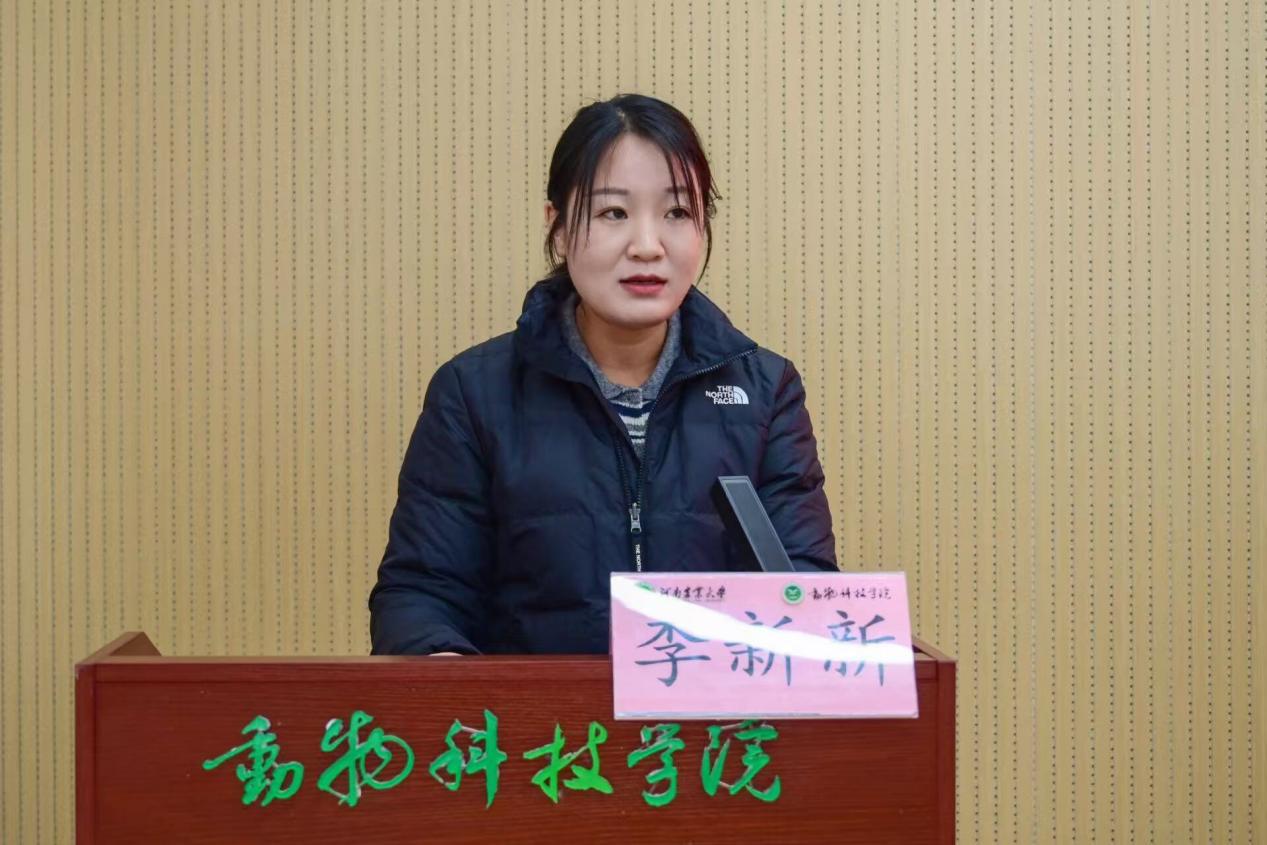 青年教师李新新作为获奖教师代表发言,她对心粮宠物集团的支持和认可表示感谢。她指出,心粮宠物是一家深耕技术研发、厚植人文关怀的企业,这份奖教金于她而言不仅是物质支持,更是精神共鸣。她表示未来会继续潜心教学育人、勇攀科研高峰,并期望产学研合作能持续深入开展,推动实验室技术成果转化,为行业技术升级贡献力量。