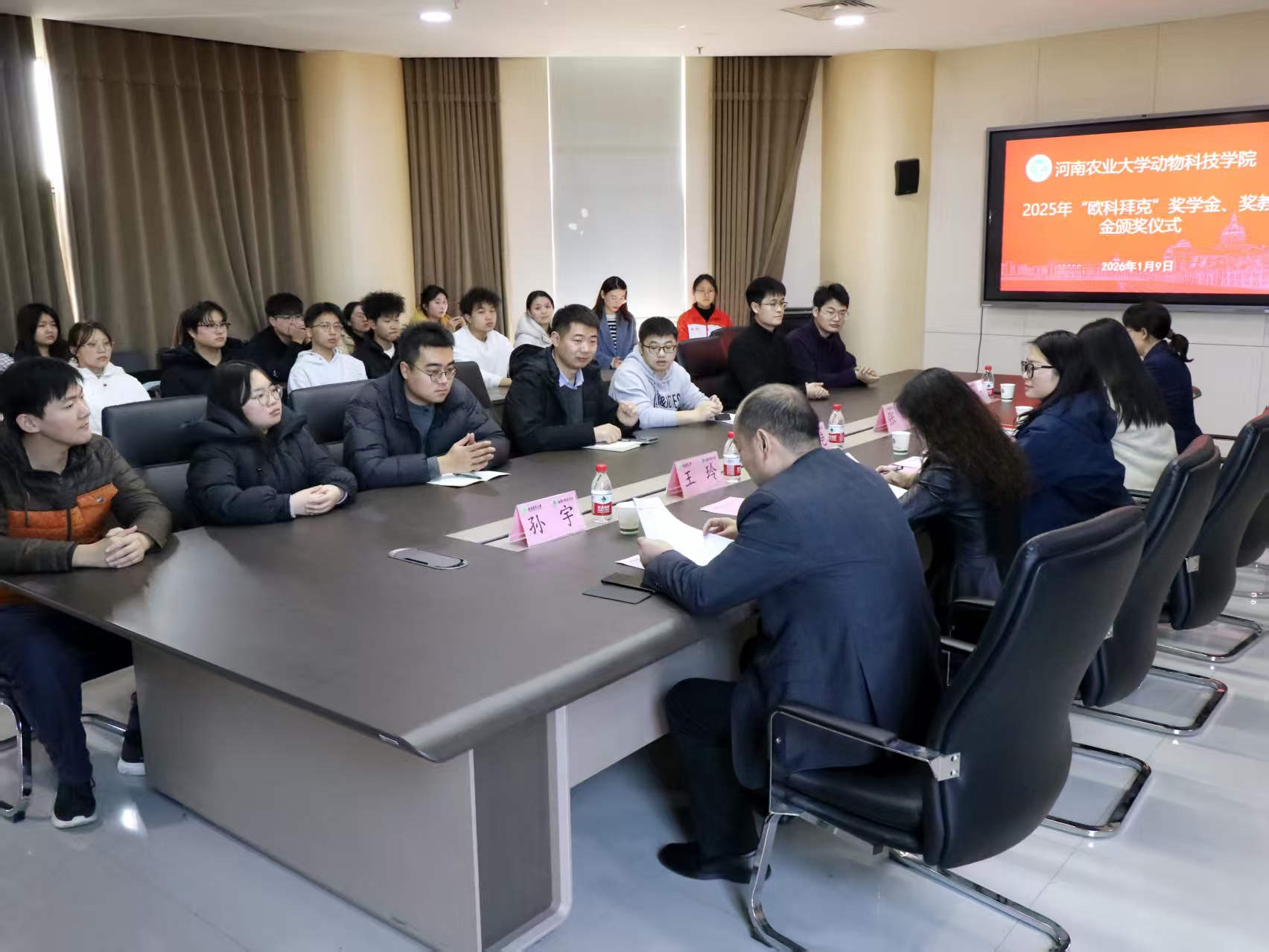 于龙子湖校区第一实验楼南501会议室举办2025年“欧科拜克”企业奖学金、奖教金颁奖仪式。欧科拜克生物技术股份有限公司综合部经理金艳艳、企宣部经理张璇、色色直播
