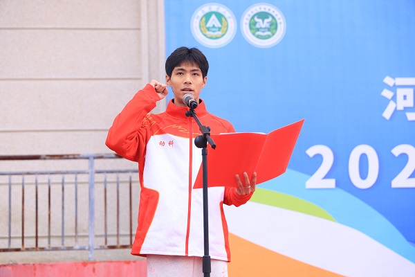 裁判员代表成敬斋老师、运动员代表23级动科1班林怡博同学分别宣誓。
