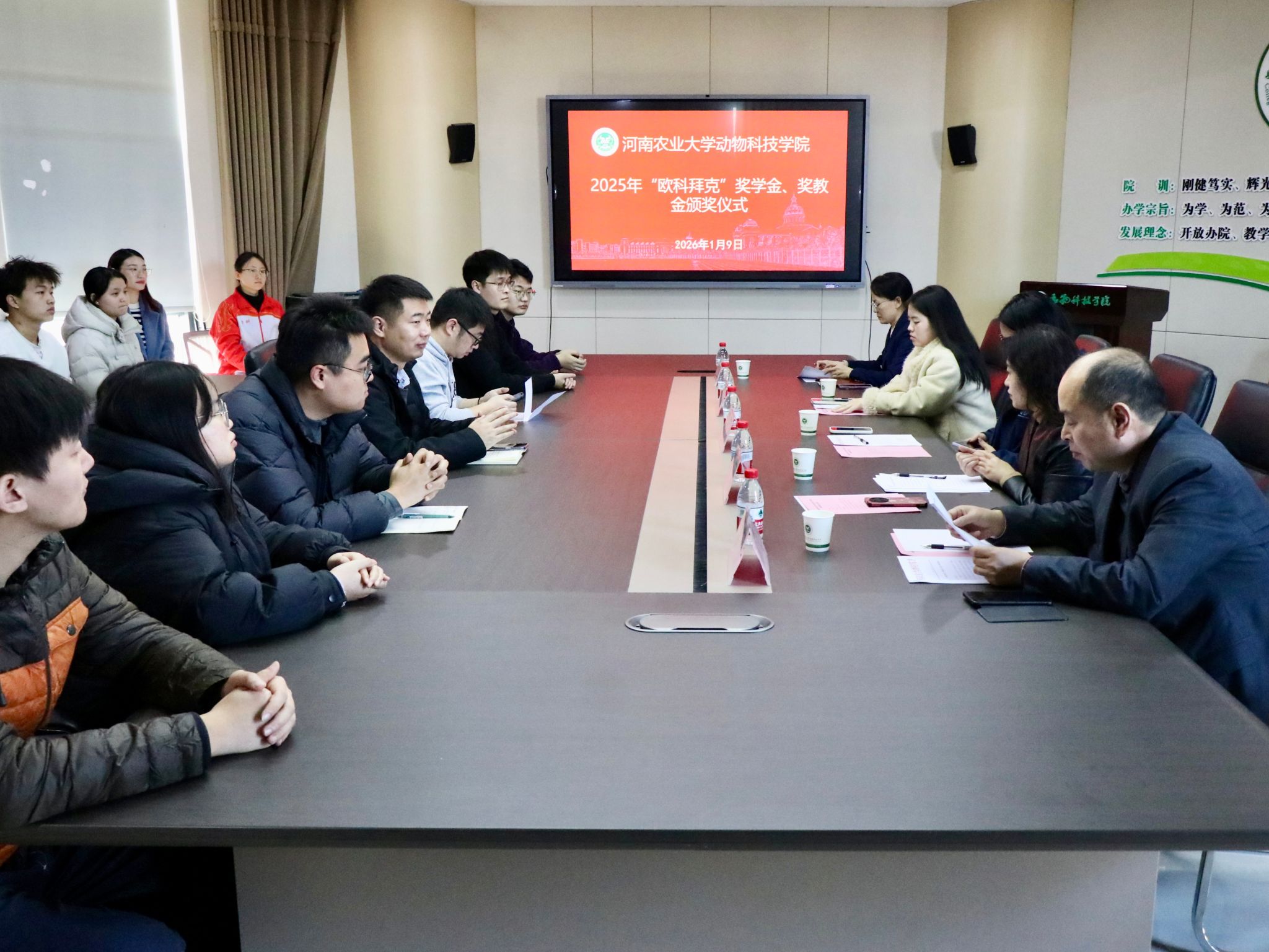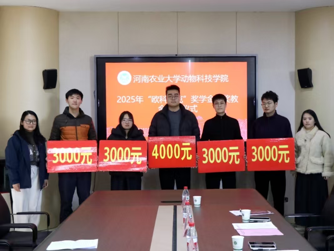 于龙子湖校区第一实验楼南501会议室举办2025年“欧科拜克”企业奖学金、奖教金颁奖仪式。欧科拜克生物技术股份有限公司综合部经理金艳艳、企宣部经理张璇、色色直播
