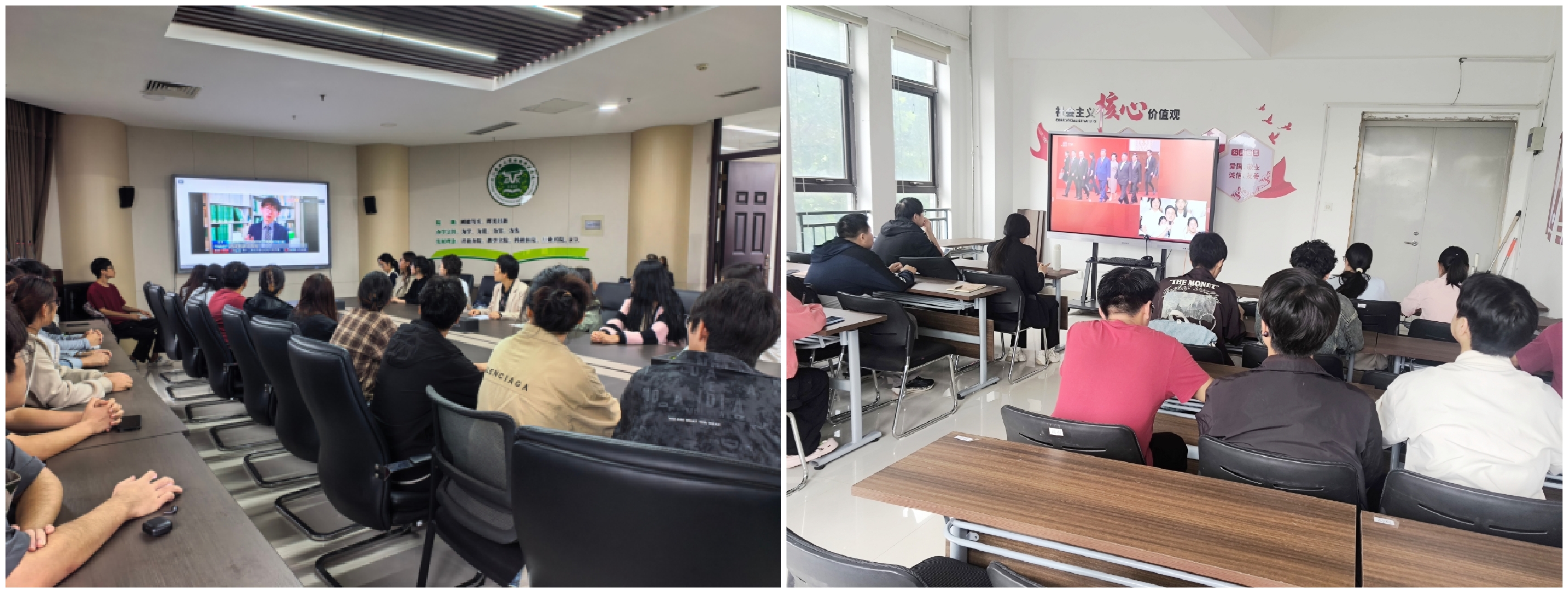 集中收看直播,重温烽火岁月。学院组织青马班学院、各班学生代表在桃李园学生宿舍自习室、第一实验楼南501会议室等集中收看“弘扬伟大抗战精神 做光荣自豪中国人——纪念中国人民抗日战争暨世界反法西斯战争胜利80周年”思政大课,通过视频观看的形式警示大家勿忘国殇,进一步强化爱国主义教育,激发广大青年学子的爱国情怀和民族使命感。