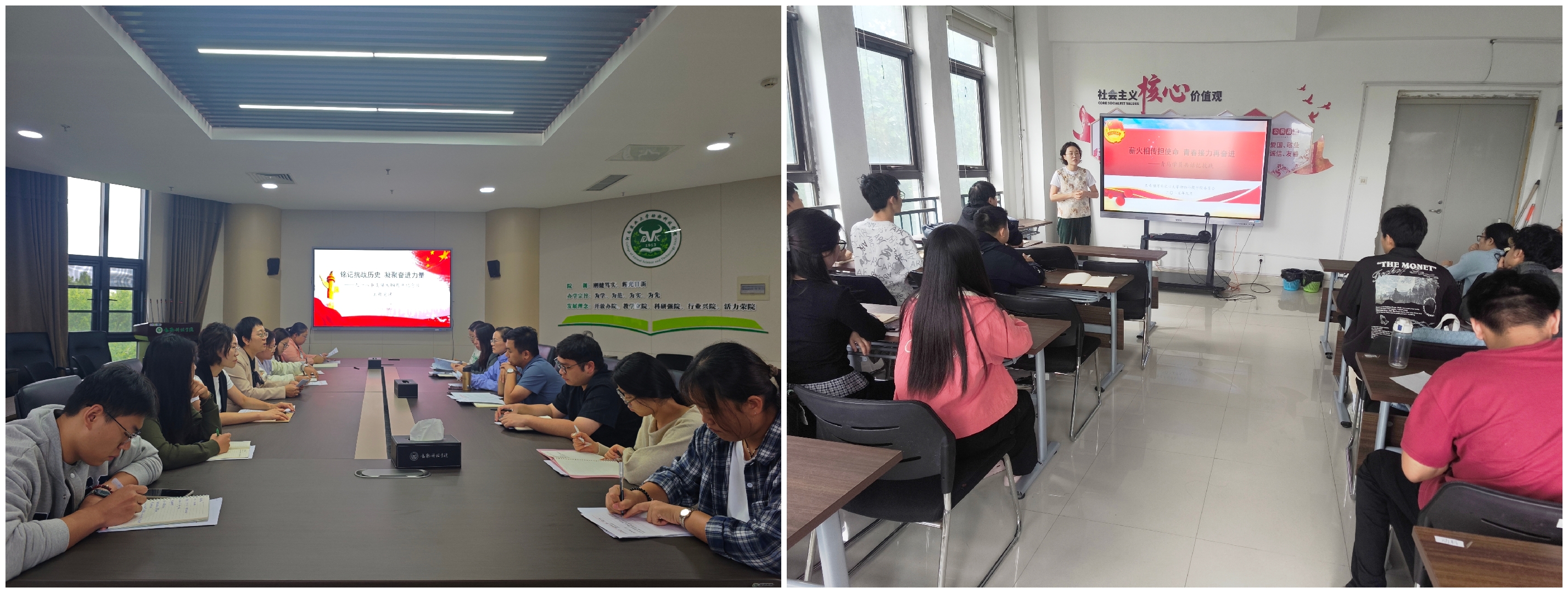 开展主题党、团课,强化使命担当。学院党委副书记郭娟在各支部党员代表中开展《铭记抗战历史 凝聚奋进力量》主题微党课,深刻阐释伟大抗战精神的时代价值,号召党员擦亮身份,赓续红色基因,将学习成效转化为岗位建功的强大动力。学院组织员兼团委书记韩笑开展主题团课,引导青年学子从历史中汲取“居安思危”的清醒、“团结奋斗”的信念以及“珍爱和平”的担当,坚持正确抗战史观、二战史观,坚定历史自信,以青春之我,筑强国之梦。